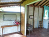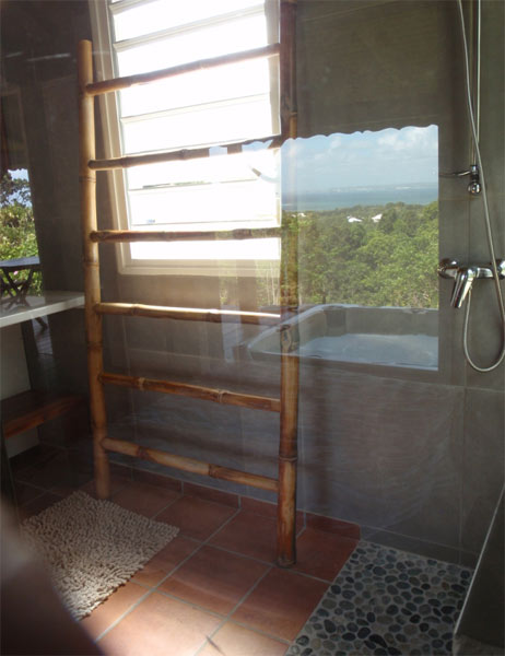 Deux bungalows indépendants, idéal pour 2 personnes. Une grande chambre climatisée avec un grand lit et une armoire, un salon équipé d’un placard de rangement à l’entrée, d’un canapé convertible et d’une petite table avec 4 chaises et d’une télévision (TNT avec 10 chaines). Une cuisine américaine équipée (lave linge, micro ondes, réfrigérateur, cafetière électrique, gazinière avec four et plaque). Une salle de bain avec douche à l’italienne, vasque et toilettes. Une véranda avec un jacuzzi 5 places (2 couchées, 3 assises), un siège Hamac et une table et 4 chaises. Une douche extérieure dans le jardin.